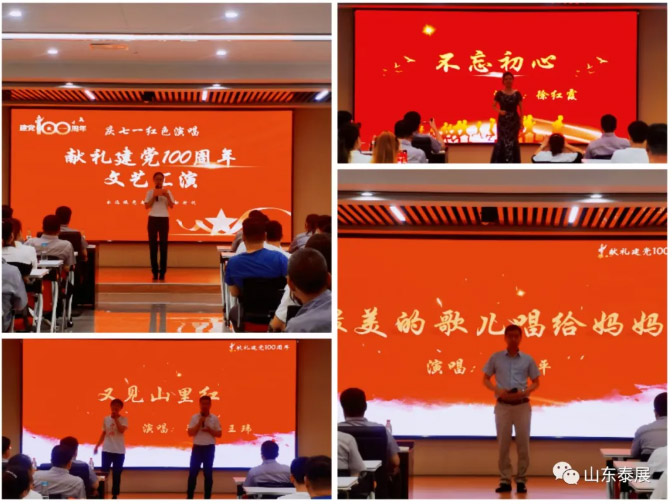 為隆重慶祝中國(guó)共產(chǎn)黨成立100周年,進(jìn)一步加山東泰展機(jī)電科技股份有限公司黨員隊(duì)伍的建設(shè)。6月30日18點(diǎn),山東泰展機(jī)電科技股份有限公司結(jié)合“學(xué)黨史、知黨情、強(qiáng)黨性”的總體思路,以“百年禮贊頌黨旗,同心起航唱紅歌”為主題,組織公司員工歡聚一堂,通過(guò)唱紅歌、詩(shī)朗誦等表演形式慶祝中國(guó)共產(chǎn)黨成立100周年,加強(qiáng)公司職工及黨支部成員對(duì)黨的光輝歷史的了解,促使公司職工積極向黨組織靠攏,增強(qiáng)愛(ài)黨愛(ài)國(guó)的責(zé)任感和使命感。